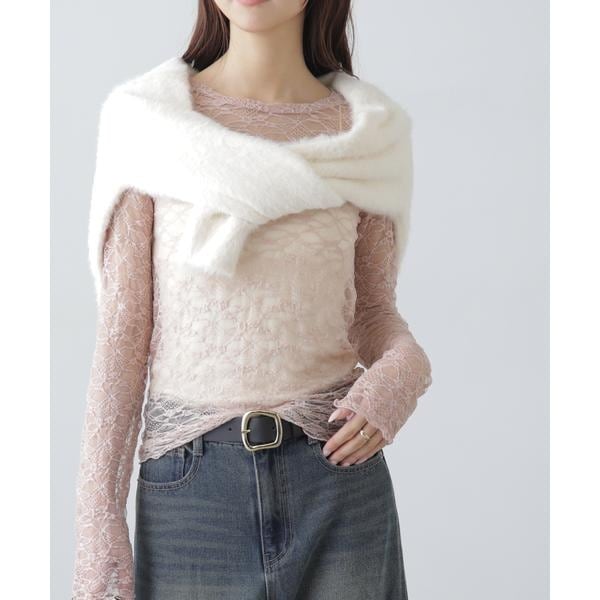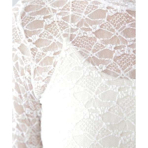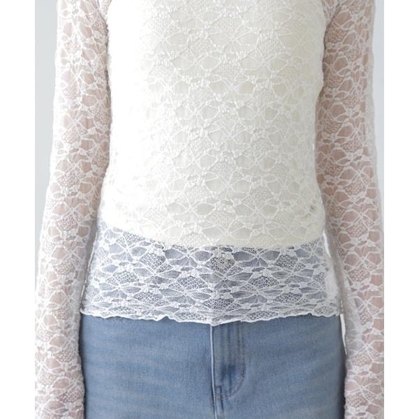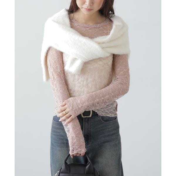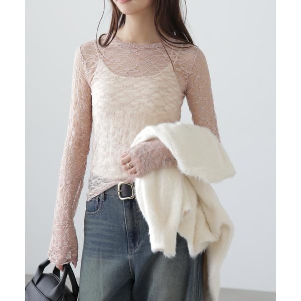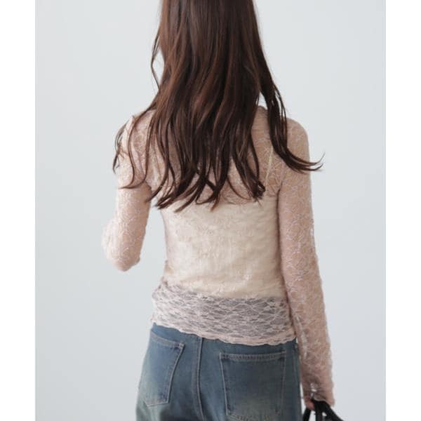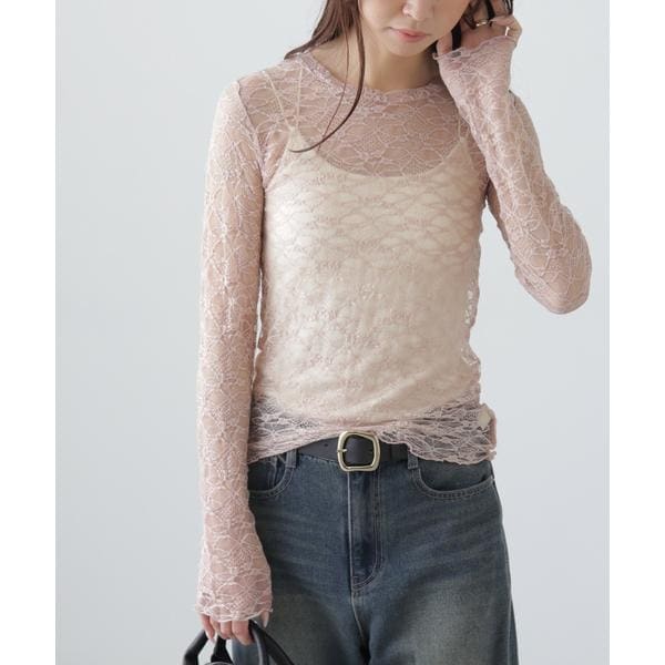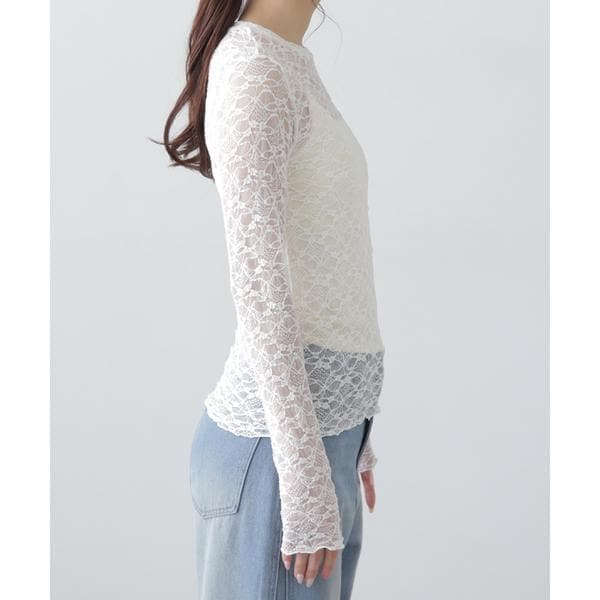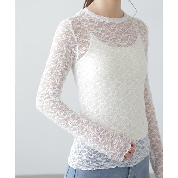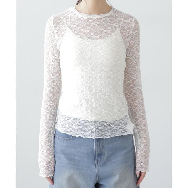 ご好評いただいたレーストップスが、着丈などを見直しアップデート。コンパクトなサイズ感が可愛いレーストップスです。凹凸のあるレースを使用しているので、のっぺりして見えず表面感があります。袖口・裾はメロー仕様でさりげなく抜け感を出しています。ベーシックな#010ブラックと#030ホワイト、人気の#090ピンクに加えて、新色#130ライトグリーンが仲間入り。サイズがコンパクトなので、ダボっとしたデニムやスラックスと合わせるのがおすすめです。レースアイテムは華やかな印象に見せてくれるので、一枚着としては勿論、インナーとしても着回せるのがポイントです。※モデルの着用画像の場合、光の当たり具合により、実際の色味と異なって見えることがございます。色味は、商品単体の画像をご参照ください。