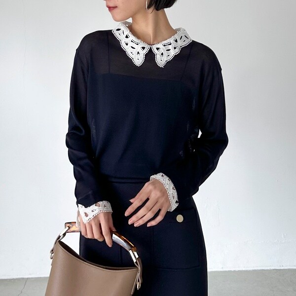 レースカラーニット