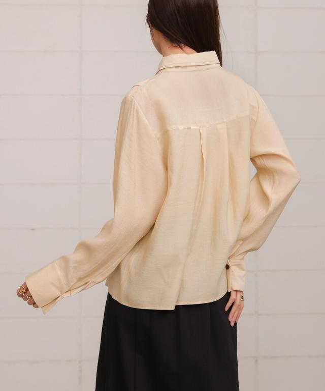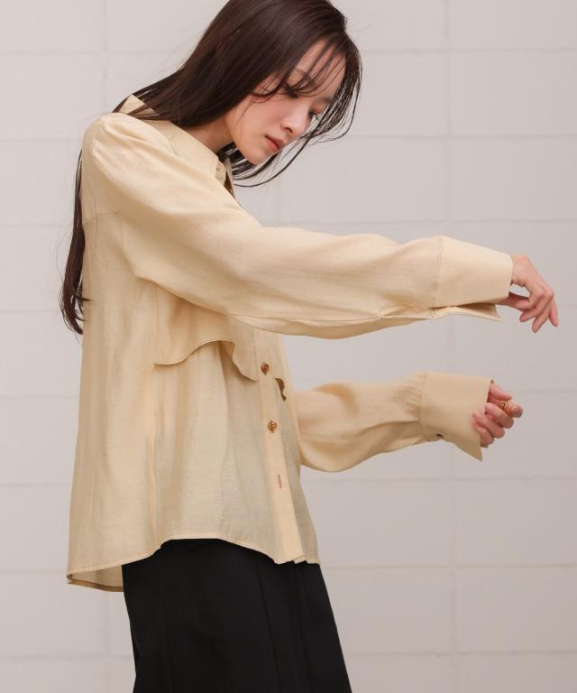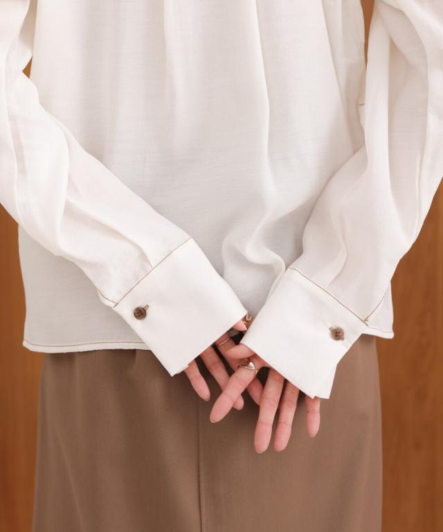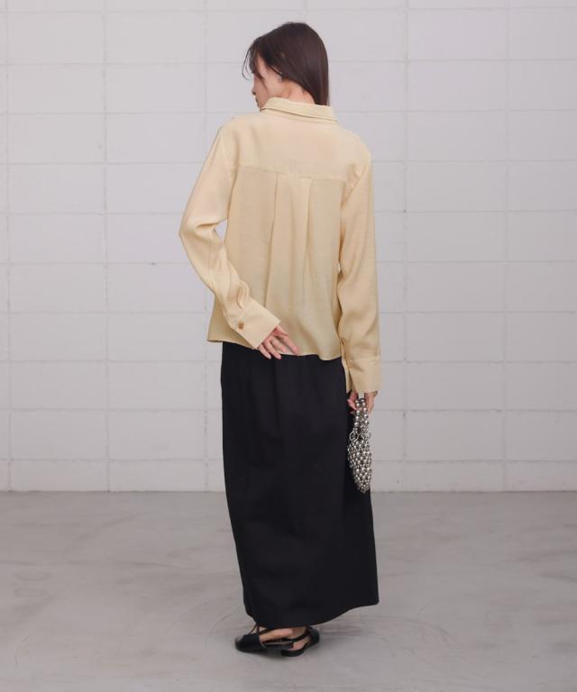表面に薄っすらとシワのあるニュアンス感を感じられる素材を使用したブラウス。レーヨン混のしなやかな肌触りなので着ていてもさらりとした着心地でストレスを感じさせないアイテムです。