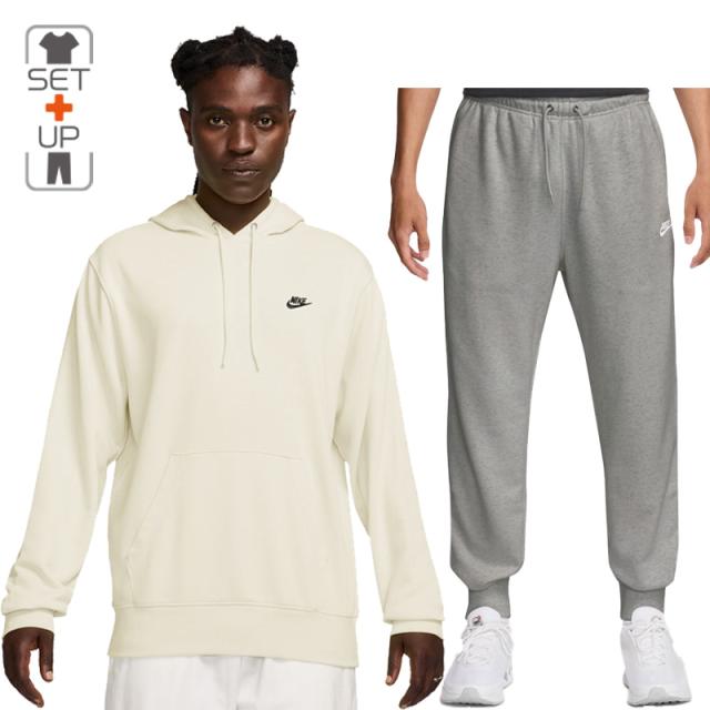 ナイキ スウェット メンズ 上下 NIKE クラブ フレンチテリー プルオーバーパーカー ジョガーパンツ セットアップ スポーツウェア 上下組 トレーニング デイリー 男性 スエット パーカ ロングパンツ オフホワイト グレー nike ブランド アパレル/FN3867-FN3802-133