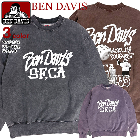 BEN DAVIS スウェット ベンデイビス ブリーチ スプレーアート プリント 裏起毛 トレーナー メンズ ゴリラ 色落ち加工 BEN-2150