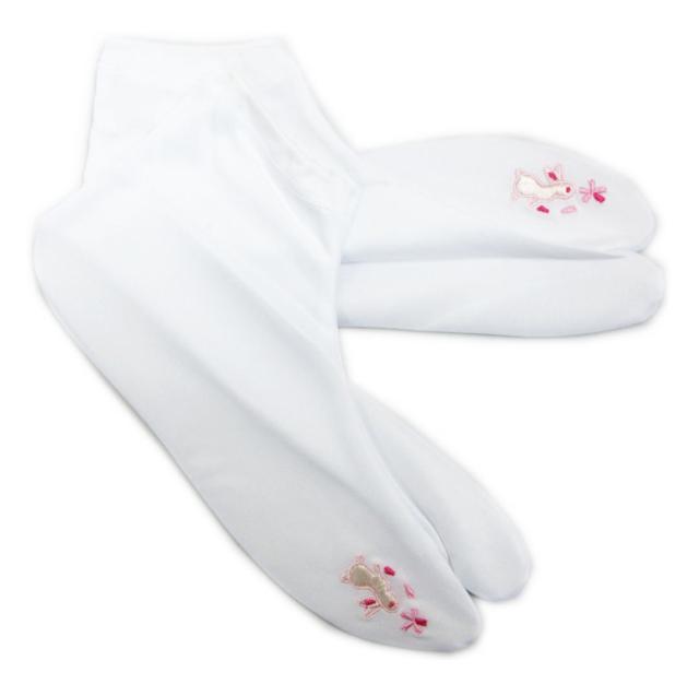 足袋 白 刺繍入り ストレッチ うさぎ桜 LL 25〜26cm 振袖 成人式 卒業式 袴 着物 女性用 大きいサイズ 2L レディース はかま のびる ウサギ