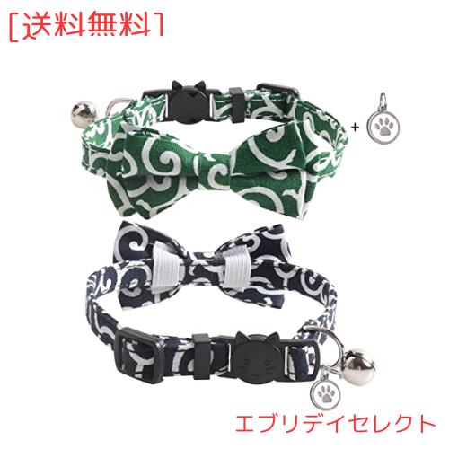 【素材とカラー】 素材は耐久性のある布生地で柔らかくとても軽いから、猫ちゃんに優しいです、柄は唐草でオシャレで可愛いです。カラーは2個セットで2タイプあり:ネイビー+レッド、ネイビー+グリーン。パッキングリスト:1)ネイビー猫首輪1個、2)グリーン猫首輪1個、3)迷子札1個、4)FUWAPETブランドタグ