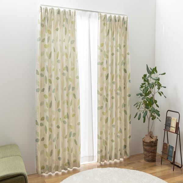 商品仕様: 日本製 カーテン ドレープカーテン 遮光 3級遮光 洗える シンプル リーフ ナチュラル カジュアル タッセル付き ウォッシャブル 【幅150cm 長さ90 cm 1枚 グリーン 緑】