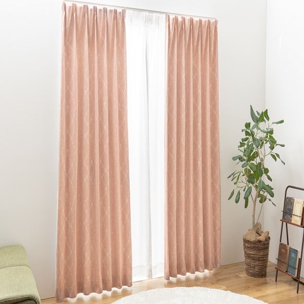 商品仕様: 日本製 カーテン ドレープカーテン 遮光 2級遮光 洗える シンプル フラワー ナチュラル カジュアル タッセル付き ウォッシャブル 【幅100cm 長さ145cm 2枚 ピンク】