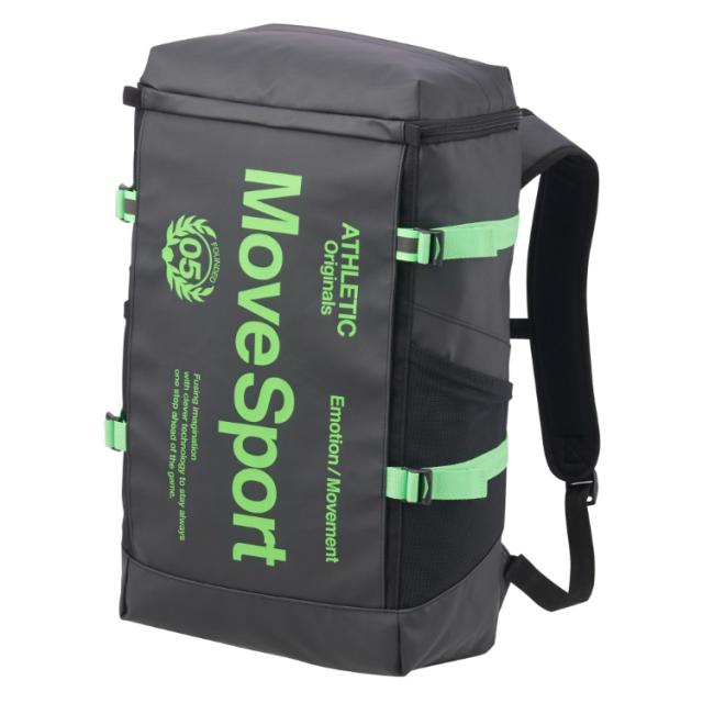 DESCENTE デサント スクエアバッグ30 ブラックxネオングリーン F ST5SBP30U BKGR | スポーツ バック リュックサック バックパック リュック ムーブスポーツ デイパック ポリエステルオックス クッション性 キーフック ペンホルダー メッシュポケット 再帰反射
