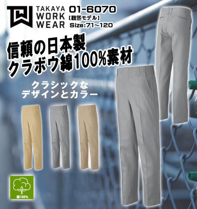 タカヤ商事 タカヤワークウェア スラックス 01-6070 秋冬 サイズ71cm~88cm 綿100% 作業服 15-6070シリーズ