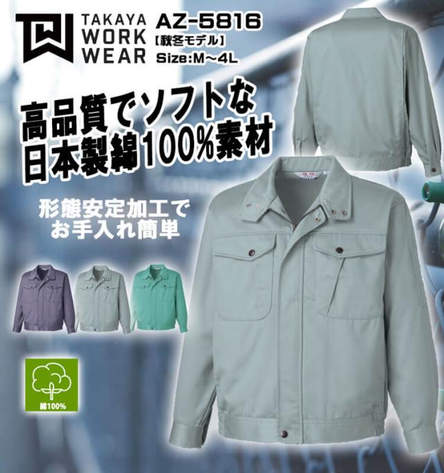 タカヤ商事 タカヤワークウェア 長袖ブルゾン AZ-5816 秋冬 サイズM〜LL 綿100% 形態安定 防シワ素材 作業服 AZ-5816シリーズ