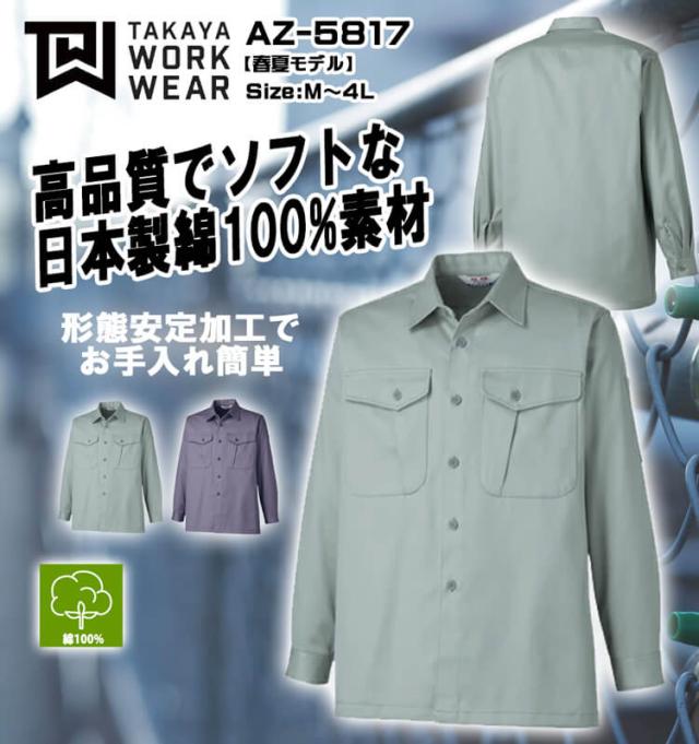 タカヤ商事 タカヤワークウェア 長袖シャツ AZ-5817 秋冬 サイズM〜LL 綿100% 形態安定 防シワ素材 作業服 AZ-5816シリーズ