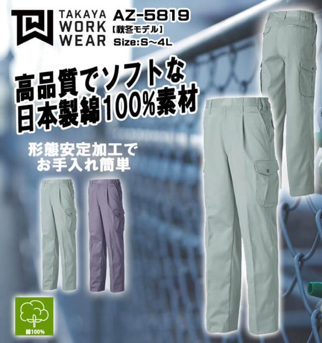 タカヤ商事 タカヤワークウェア ワンタックカーゴパンツ AZ-5819 秋冬 サイズ3L・4L 綿100% 形態安定 防シワ素材 作業服 AZ-5816シリーズ