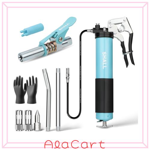 SHALL グリースガン 片手タイプ高圧手動式 7000 PSI ヘビーデューティー ピストルグリップ グリースガン キット (グリースガン カプラ付