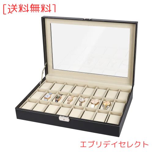 QuiExact 腕時計収納ケース 透明窓付き 腕時計ボックス コレクションケース 時計保管 ウォッチボックス アクセサリー収納兼用 PUレザー製