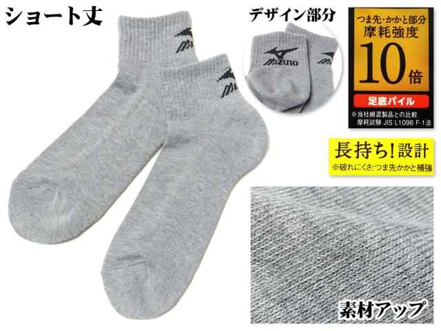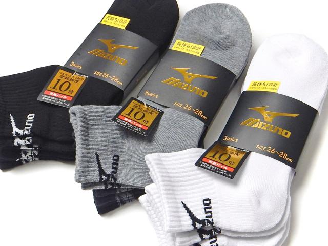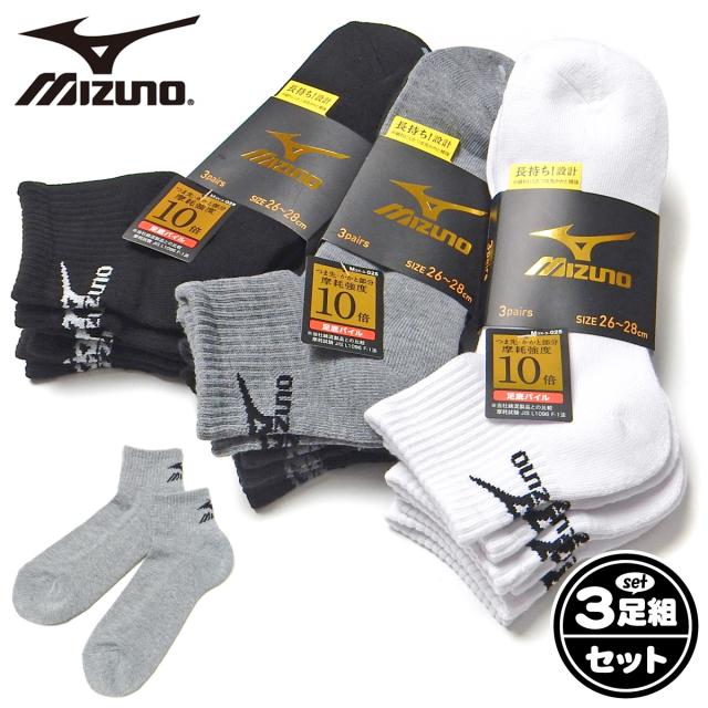 【送料無料】【大きいサイズ】3足組セット 紳士 メンズ ショート丈 ソックス 靴下 MIZUNO/ミズノ つま先かかと補強 破れにくい 長持ち 足底パイル L 26-28cm yg-2573【メール便対応】