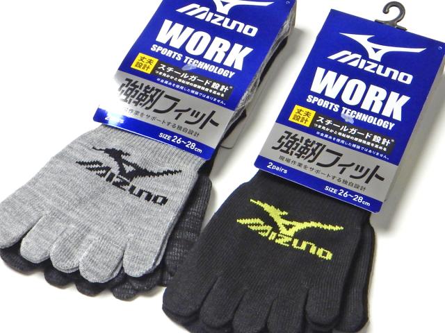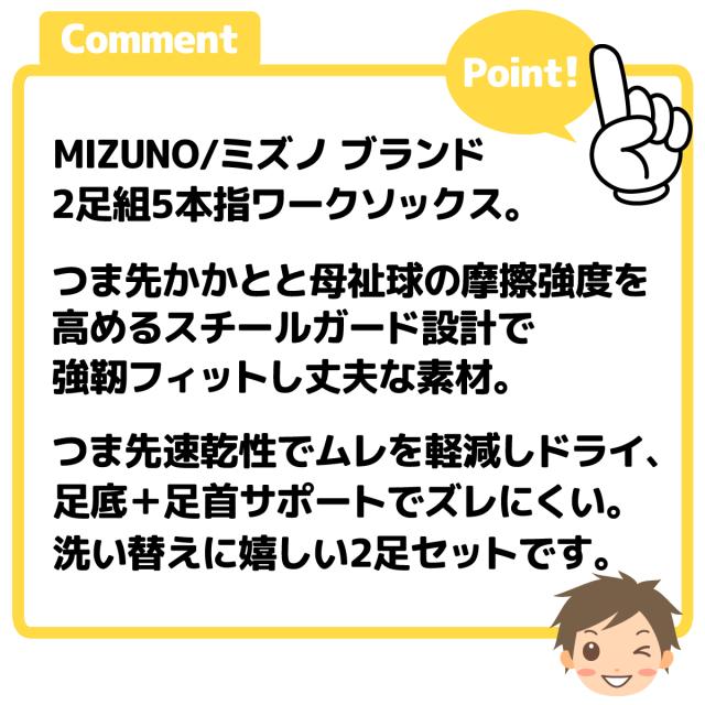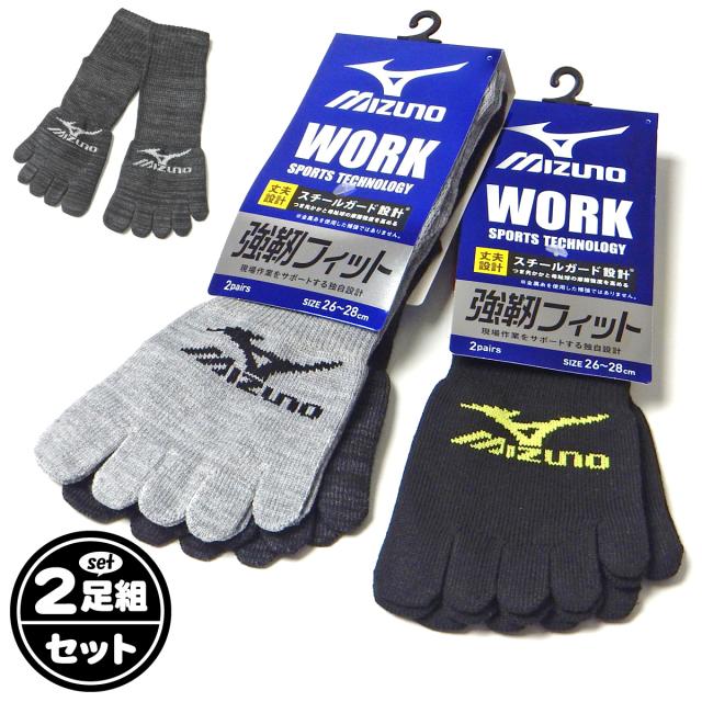 【送料無料】【大きいサイズ】2足組セット 紳士 メンズ 5本指 ワークソックス 靴下 MIZUNO/ミズノ つま先かかと丈夫 強靭 耐久性 速乾性 サポート かかとあり L 26-28cm yg-2572【メール便対応】