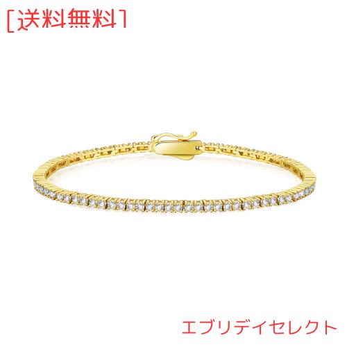 KRKC&CO 2mm テニスブレスレット レディース ブレスレット S925シルバー ジルコニア 14金ゴールドメッキ CZダイヤ 腕輪 メンズ ブレス ヒ