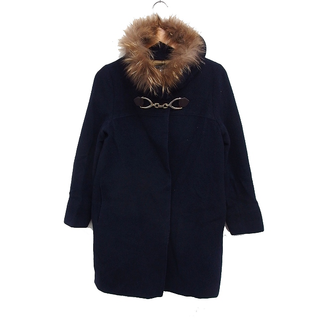 【中古】エストネーション ビス ESTNATION bis ファー付き スタンドカラー コート アウター ミディ丈 無地 アルパカ混