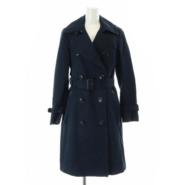 【中古】ヒステリックス Hysterics ダブルボタントレンチコート スプリング ロング 裏地レオパード S 紺 ネイビー