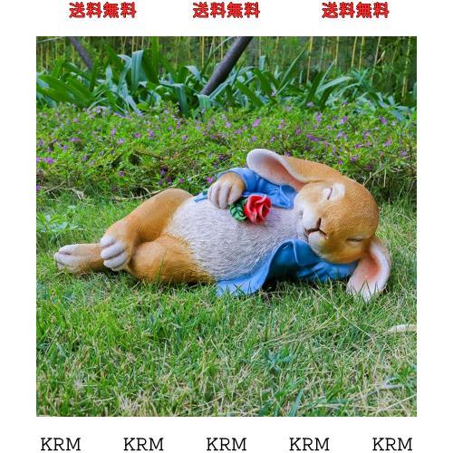 【お昼寝うさぎとローズ】ローズはロマンチックな雰囲気を演出し、眠りの姿は艶やかに人々を、生活に憧れ、ローズに愛し、キュートな彫像があなたの家をもっと暖かくて美しくさせます!