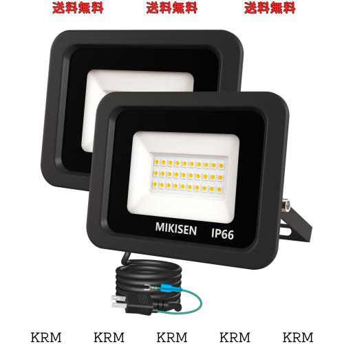 MIKISEN led 投光器 作業灯 看板灯 20w 電球色 2300LM 3000K 180w相当 1.8コード IP66防水 アース端子付2Pプラグ 120°広角 100V対応 ワ