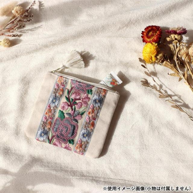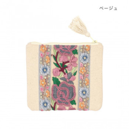 インド刺繍リボン ポーチ (S) ベージュ 13124000418 |b03