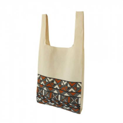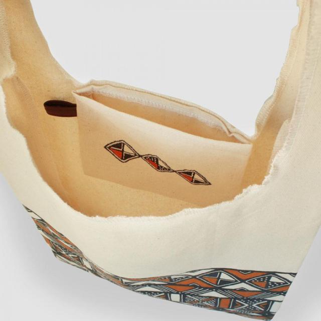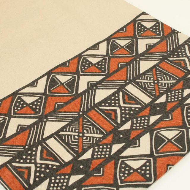 商品詳細:世界の民芸品の柄にアレンジを加え、かわいらしく仕上げました。本体はプリント、折りたたんだ時に見えるポケットには刺繍でモチーフを描いています。ボゴラン:西アフリカ・マリ共和国の泥染め 生産国:インド 素材・材質:綿100%(オーガニックコットン) 商品サイズ:H60×32cm