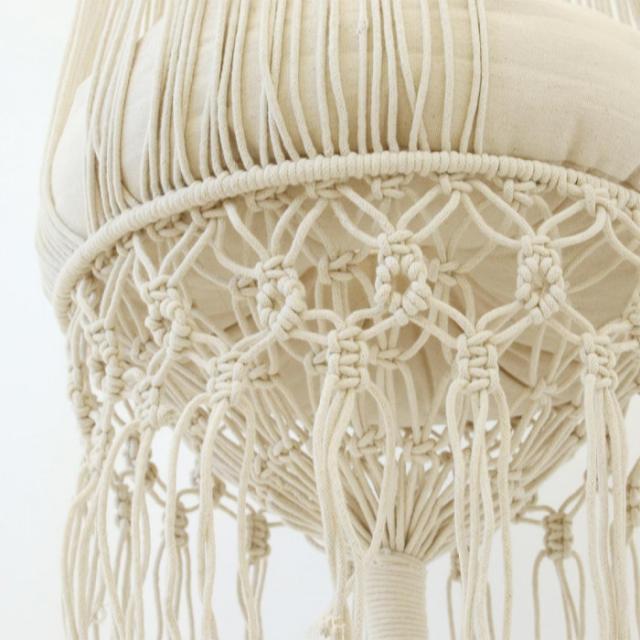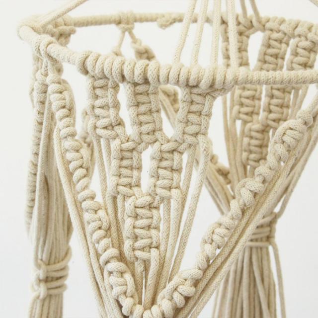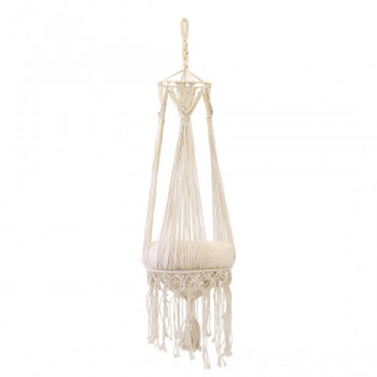 商品詳細:ひもを結んだり、編み込むことで美しい模様を生み出すマクラメ編み。そんなマクラメ編みを使ったキャットハンギングベッドです。インテリアのアクセントとしてもお使いいただけます。BOHOスタイル、ナチュラル、エスニックなど色々なスタイルに合わせてお楽しみください。 生産国:インド 素材・材質:マクラメ部分:綿100%、クッション:表地綿100%、中わたポリエステル100% 商品サイズ:約TH150cm