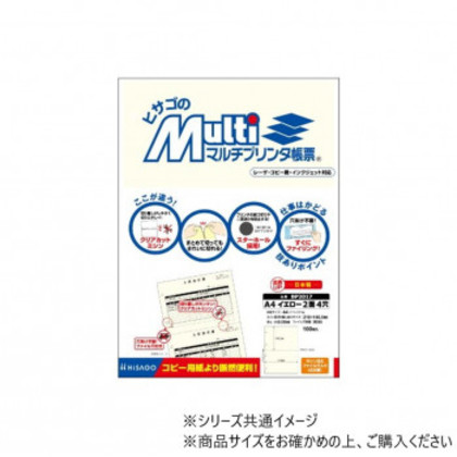 ヒサゴ マルチプリンタ帳票 A4 イエロー 2面 4穴 100枚 BP2017 |b03