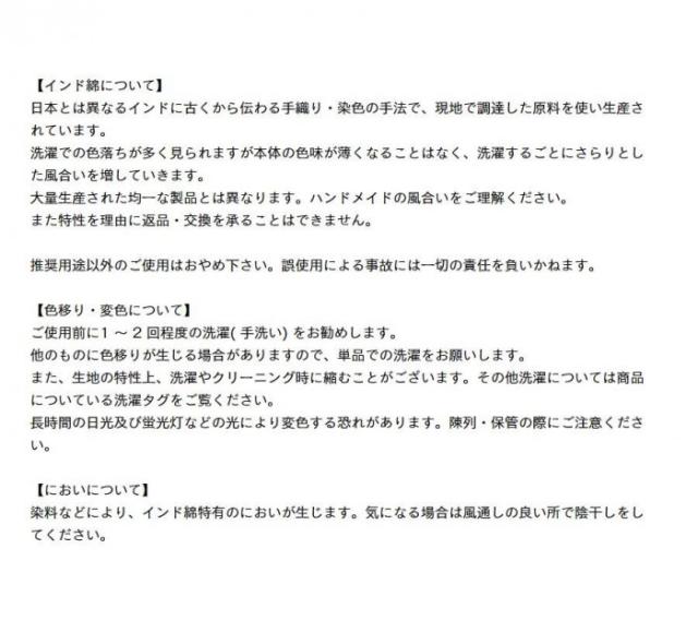 | ざっくりしたインド綿で織ったフリンジ付きのマルチカバー。太めの糸を使用しているので透け感がありません。2人掛けのソファーも覆えるビッグサイズです。 【取扱上の注意】 ※ご使用前に1〜2回程度のお洗濯をお勧めします。 ※色物は洗濯をすると他のものに色移りが生じる場合がございますので、基本的に単品で手洗いをお願いします。 ※色物は湿気・汗・摩擦等により多少色落ち・色移りをする場合がございます。白色・淡色とのご利用には十分にご注意頂きますようお願いします。 ※製造上、多少の織ムラ・別色の糸混入が生じる場合がございますがご了承ください。 ※染料の匂いが残っている場合があります。その際は風通しの良い所でご使用ください。 ※洗濯・クリーニング時に生地が若干縮むことがあります。 |