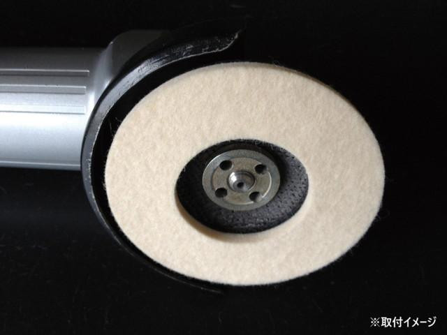 商品詳細:ステンレス・鉄・アルミ・銅・真鍮などの艶出し、鏡面仕上げ、拭き取りに。 生産国:日本 商品サイズ:外径:100mm 仕様:取付工具:100mmディスクグラインダーネジ径:M10 P:1.5最高使用回転数:13000rpm