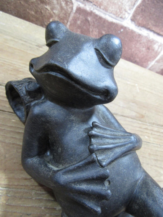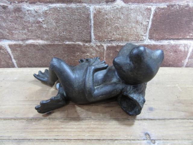 商品詳細:リラックスしたカエルの置物です。 生産国:中国 素材・材質:レジン 商品サイズ:W185×H90×D95mm