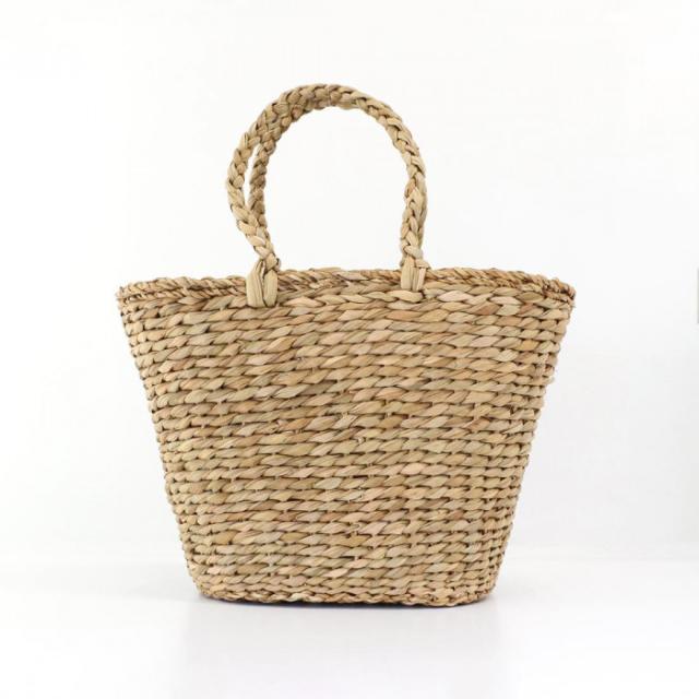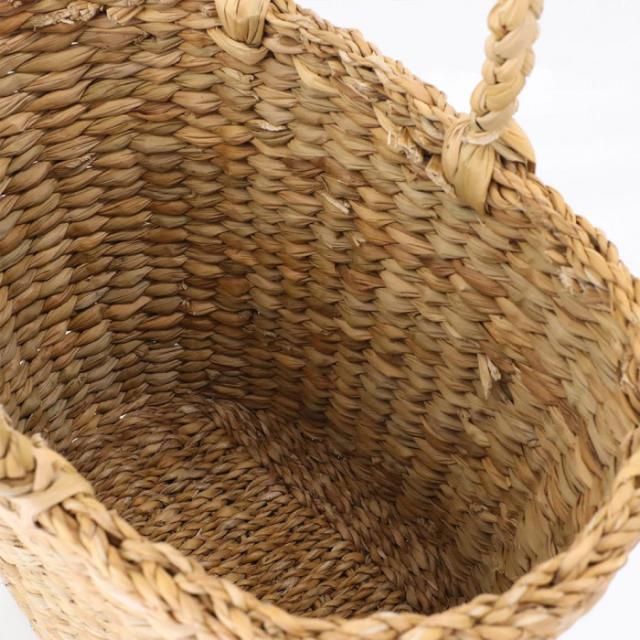商品詳細:地球にやさしい天然素材の水草バッグ。水草で編んだ天然素材のかごバッグ。ひとつひとつ手作業で作られているので、個体差があるのも味わいがあります。たっぷり入るバッグとしてはもちろん、バスケットとしてインテリアにも映えます。 生産国:バングラディッシュ 素材・材質:ジュート 商品サイズ:本体:約40×20×H27cm