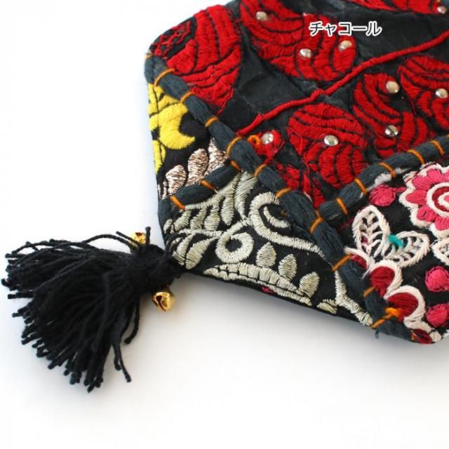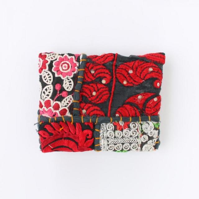 商品詳細:インドの古布にフリンジ、鈴など装飾が贅沢なシリーズ。オンリーワンの布の組み合わせが楽しい。サリーやクルタなど、華やかな刺繍やビーズが施された伝統衣装の希少なヴィンテージ布をひとつひとつ手でつなぎ合わせた生地です。 生産国:インド 素材・材質:表地:綿50%、レーヨン50%裏地:綿100% 商品サイズ:W12.5×L9cm