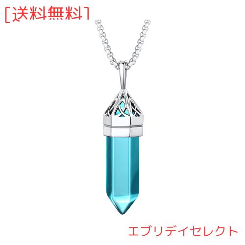 [Bestyle] ネックレス レディース 誕生石 3月 アクアマリン 合成石 ステンレス ペンダント メンズ 男女兼用 アクセサリー(シルバー)