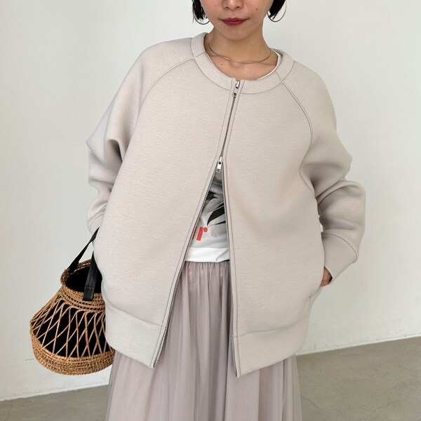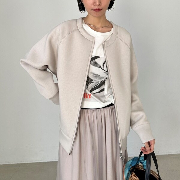 W ZIPボンディングノーカラーブルゾン