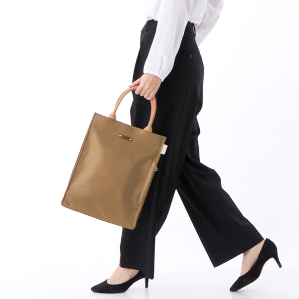 きれい目ナイロン使用で機能的なデイリートートバッグ。普段使いからお仕事でも活躍してくれます。