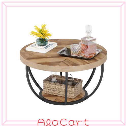 Tribesigns ローテーブル リビングテーブル 丸 サークルコーヒーテーブル 収納棚付き モダンおしゃれ 木製センターテーブル ソファサイド