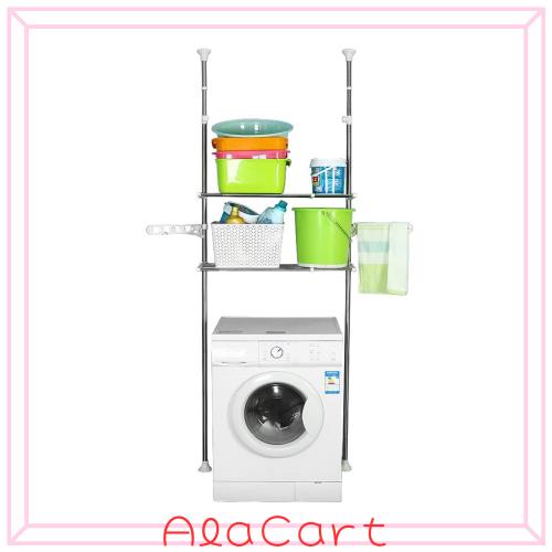 BAOYOUNI つっぱり棚 洗濯機ラック ランドリーラック2段 天井の梁や床の段差があっても設置できる 突っ張り式ラック ハンガーバー付属 (