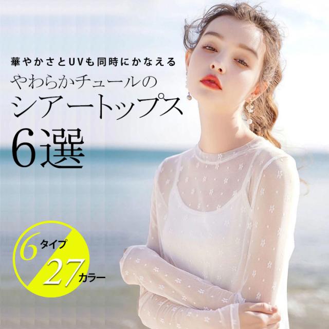 6タイプ 27カラー シアートップス レース チュール シースルー トップス 長袖 刺繍 インナー ハイネック 肌魅せ タートルネック 透けトップス