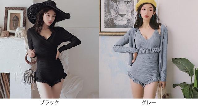レディース 韓国ファッション 水着 スイムウェア ワンピース フリル ラッシュガード 無地 体型カバー 大人可愛い スパ 海 プール シンプル ビーチ リゾート マリン