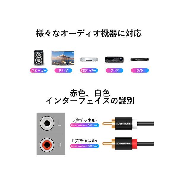 商品仕様: 【5本セット】 VENTION 2RCA Male to Male オーディオケーブル メタルタイプ 2m ブラック 黒 VA-6364X5