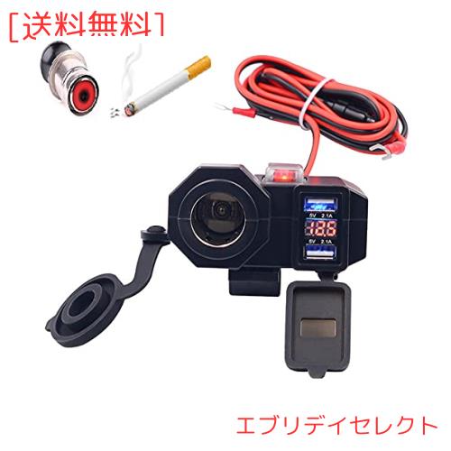 バイク用電源 バイク usb電源 防水 USB充電器 バイク USB2ポート バイク用USB充電器 オートバイ電源アダプター 4.2A 電圧計付 シガーライ