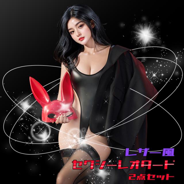 レザー風 セクシーレオタード2点セット ストッキング付き セクシーレオタード セクシーランジェリー セクシー下着 下着 ハイレグ レオタード レースクイーン コスプレ コスチューム ボディコン ダンス 透け透け セクシーコスチューム