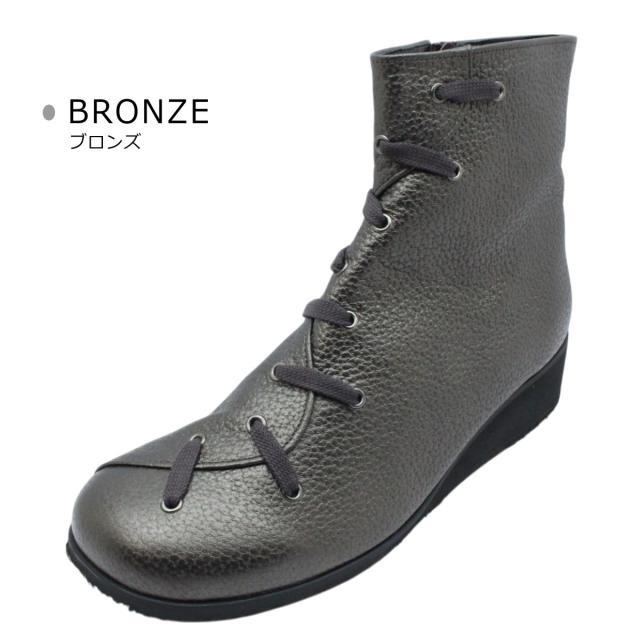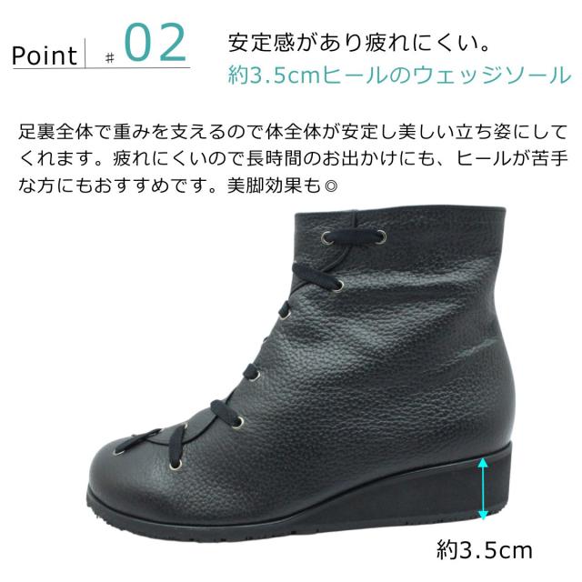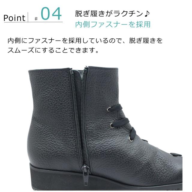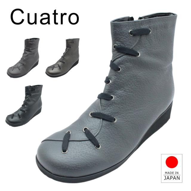 Cuatro クアトロ クワトロ レディース シューズ レザー スノーシューズ ショートブーツ 33 ファスナー 防滑 幅広 3E ウェッジソール 本革 日本製 国産靴