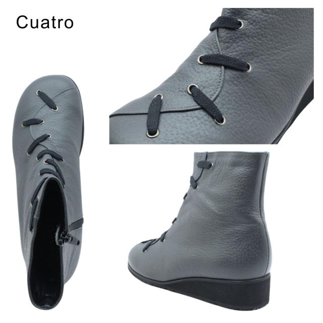 | Cuatro クアトロ クワトロ レディース シューズ レザー スノーシューズ ショートブーツ 33 ファスナー 防滑 幅広 3E 本革 日本製 国産靴 |