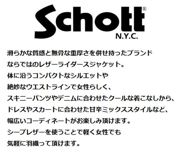 【本格/羊革レザー】Schott ショット 本革 羊革 ジャケット レディース レザージャケット Y_U 7822950603 7986811 ライダースジャケット ダブルライダース レザー アウター 革ジャン 正規品 ブランド おしゃれ 送料無料