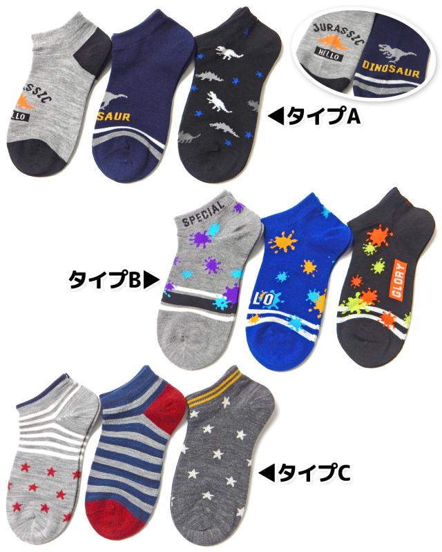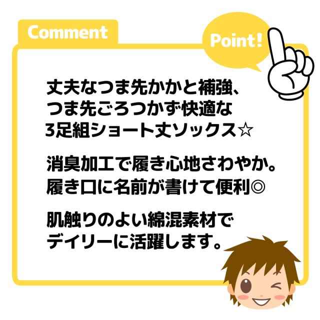 【送料無料】3足組セット 男児 ジュニア ショート丈 ソックス 靴下 つま先かかと補強 つま先ごろつかない 消臭加工 綿混 子供 男の子 19-24cm yg-2566【メール便対応】