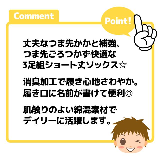 【送料無料】3足組セット 男児 キッズ ショート丈 ソックス 靴下 つま先かかと補強 つま先ごろつかない 消臭加工 綿混 子供 男の子 15-20cm yg-2564【メール便対応】
