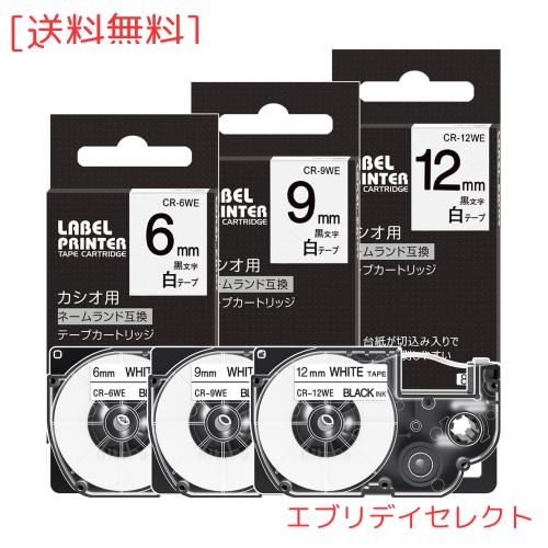 互換 6mm 9mm 12mm カシオ ネームランド テープ 白 XR-6WE XR-9WE XR-12WE 3個セット casio テプラテープ nameland テープカートリッジ
