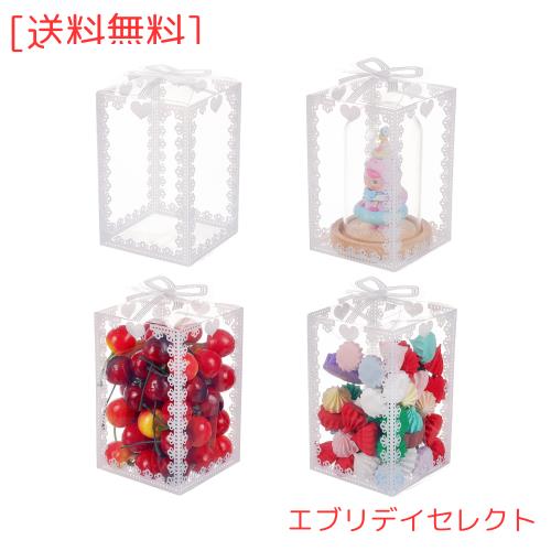 BENECREAT 24個 透明プラスチックケース レースリボン柄 14x9x9cm ギフトボックス クリア 折り畳みボックス PVC 小物入れ 包装資材 記念