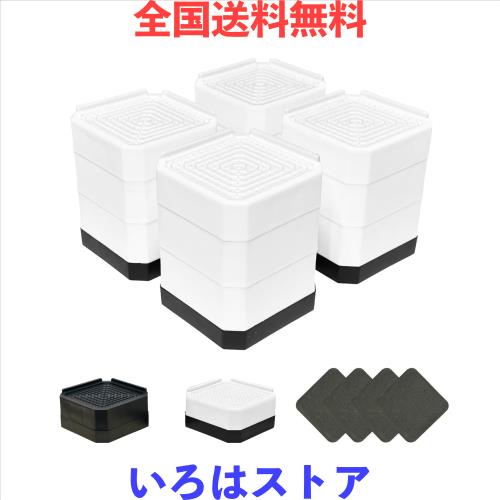 【幅広い用途・安定感バッチリ】洗濯機だけでなく、冷蔵庫、ベッド、ソファ、テーブル、棚などの家具や家電製品の台、高さ調整にご活用できます。セット内容:4個入り。耐荷重:約2000kg(4個使用時)。※適用対象:丸足の直径/矩形足の最長辺が79mm内、85cm以上はつなぎ合わせる必要があります。